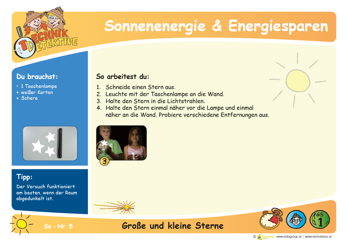 Du siehst an der Wand den Schatten des Sternes. Wenn du den Stern näher an die Lampe hältst, wird der Schatten größer. Je weiter du den Stern an die Wand hältst, desto kleiner wird der Schatten.